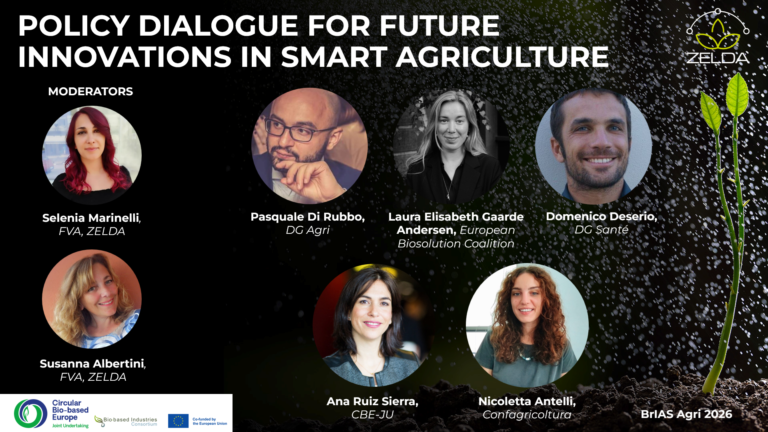 Last 5 February at BrIAS Agri 2026, the ZELDA project organised a high-level policy dialogue exploring policy frameworks and the regulatory, economic, and technological future of smart agriculture in Europe. Moderated by Selenia Marinelli and Susanna Albertini (FVA – New Media Research), the session “Policy Dialogue for Future Innovations in Smart Agriculture” brought together representatives from EU institutions, industry, and farmers’ organisations to discuss how to accelerate innovation in biostimulants, biocontrol, and smart agriculture.